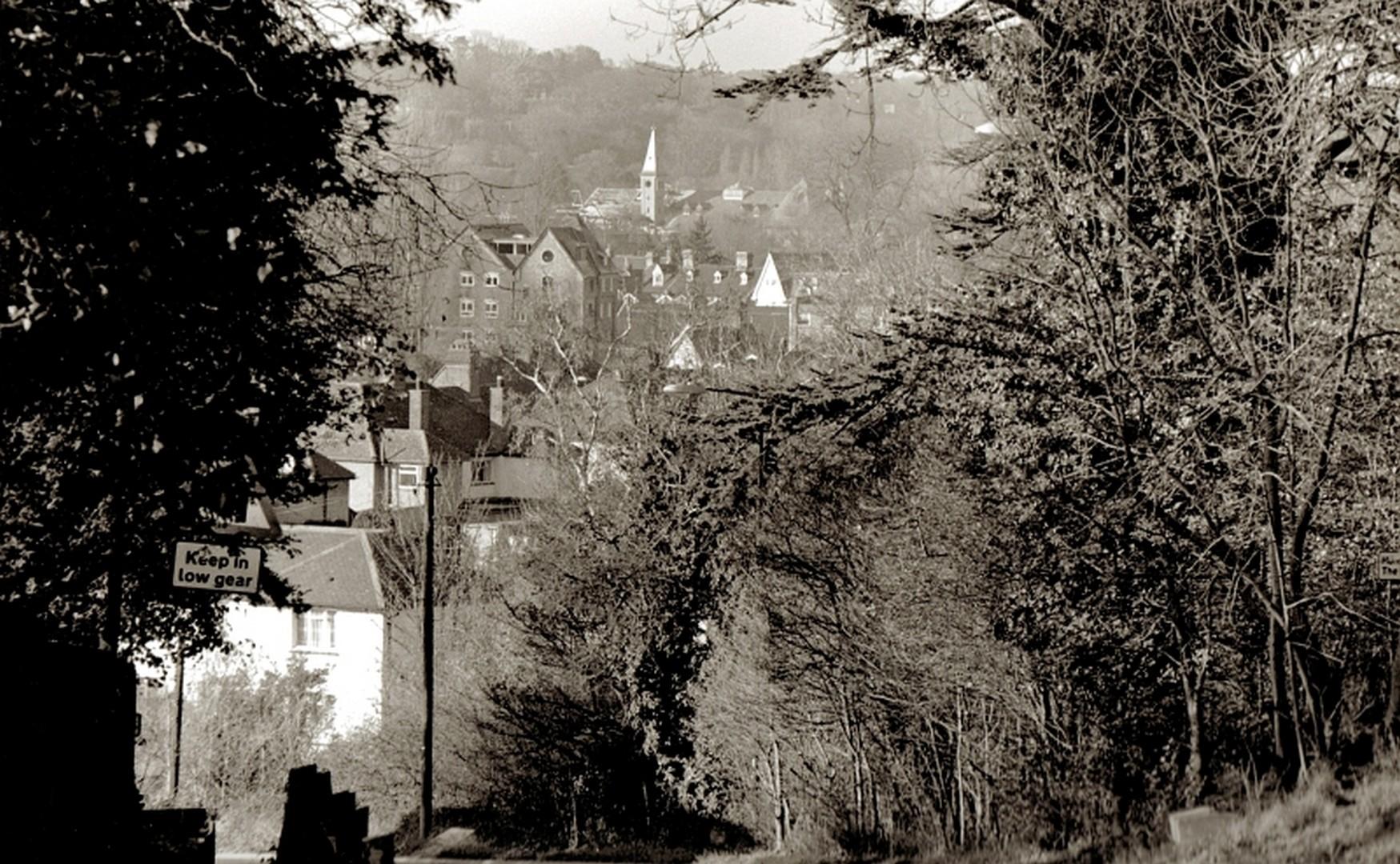 View of the old Maltings from Cats Hill. Photo Nov 1989