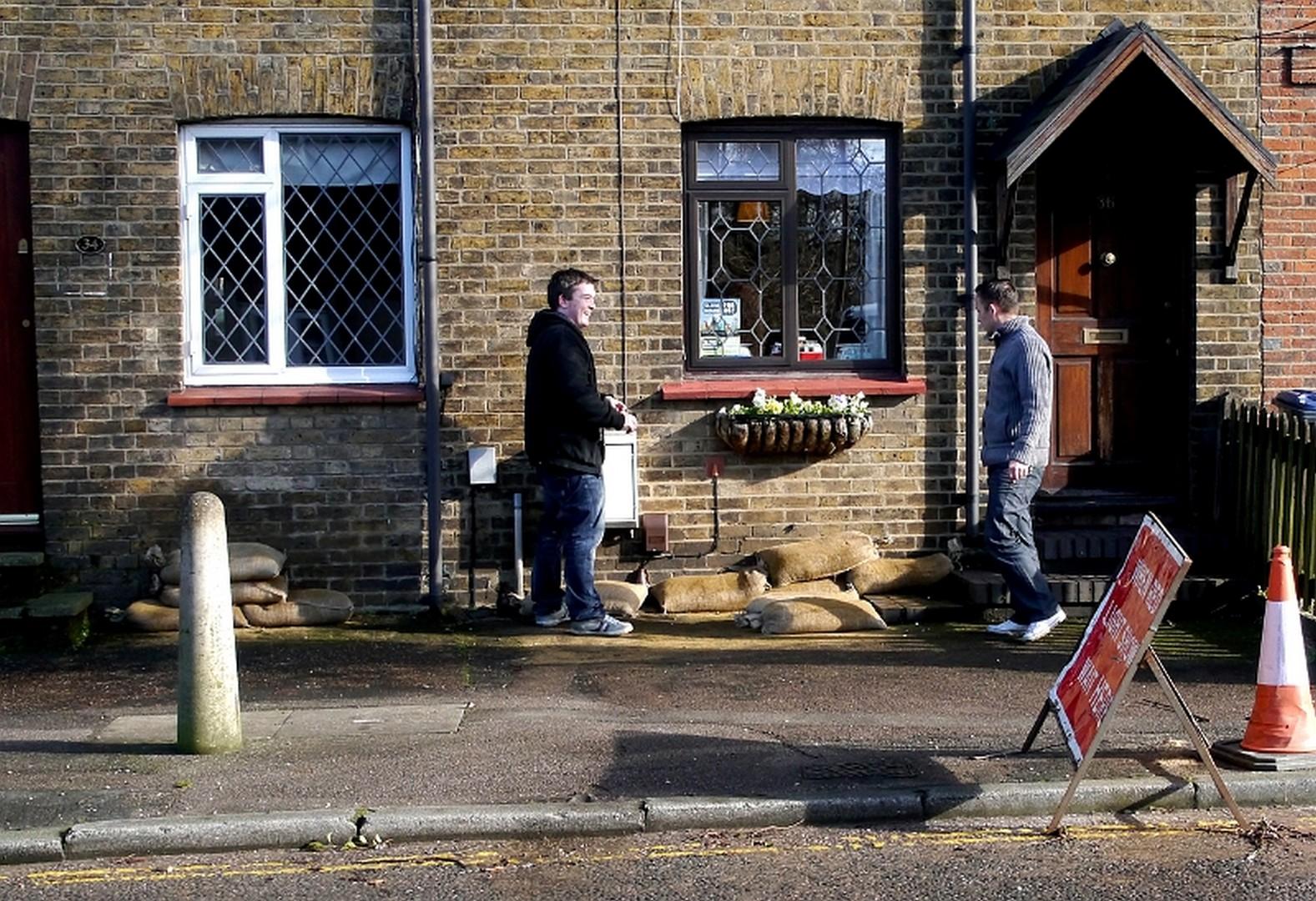Sand bags in Roydon Road. Feb 7th 2014