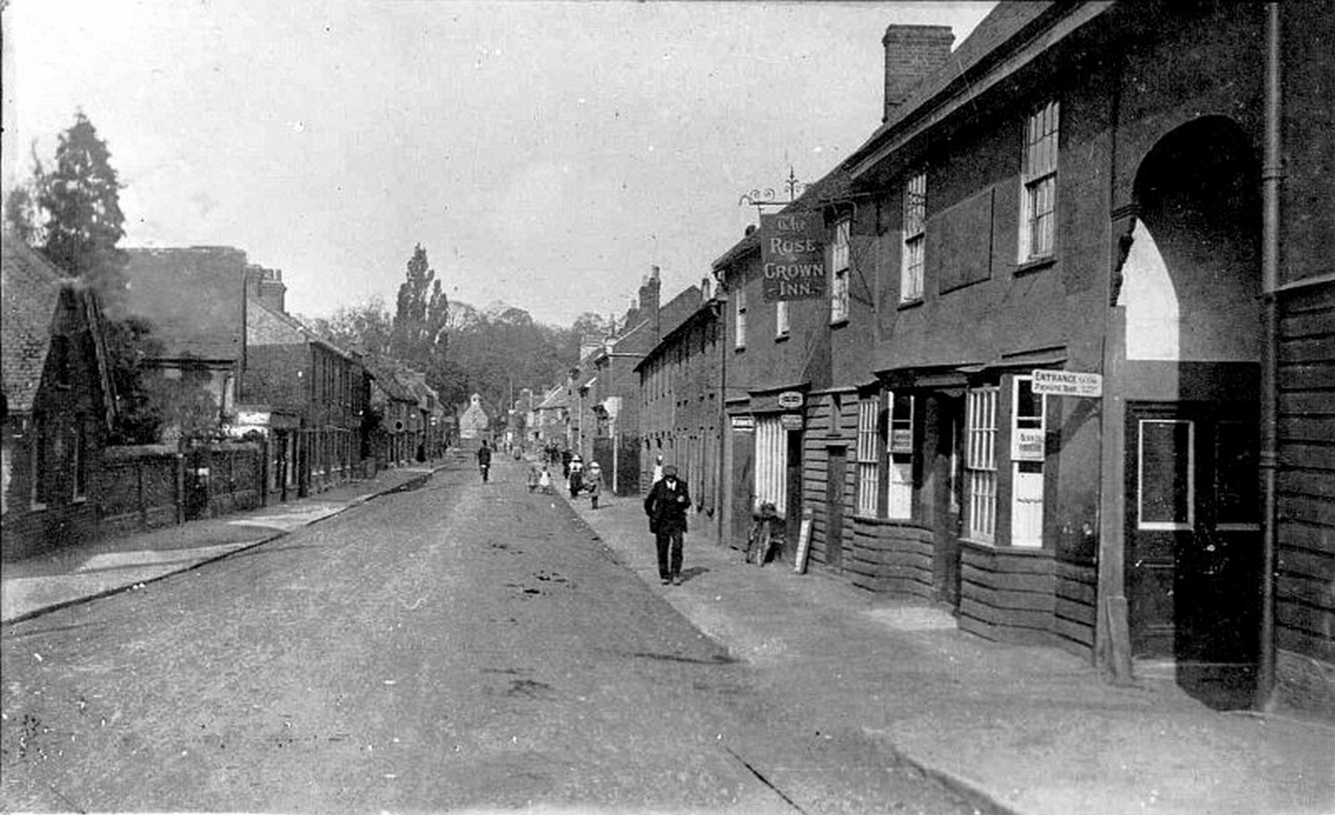 Stanstead High Street and Rose and Crown Inn. Postcard posted 1925.